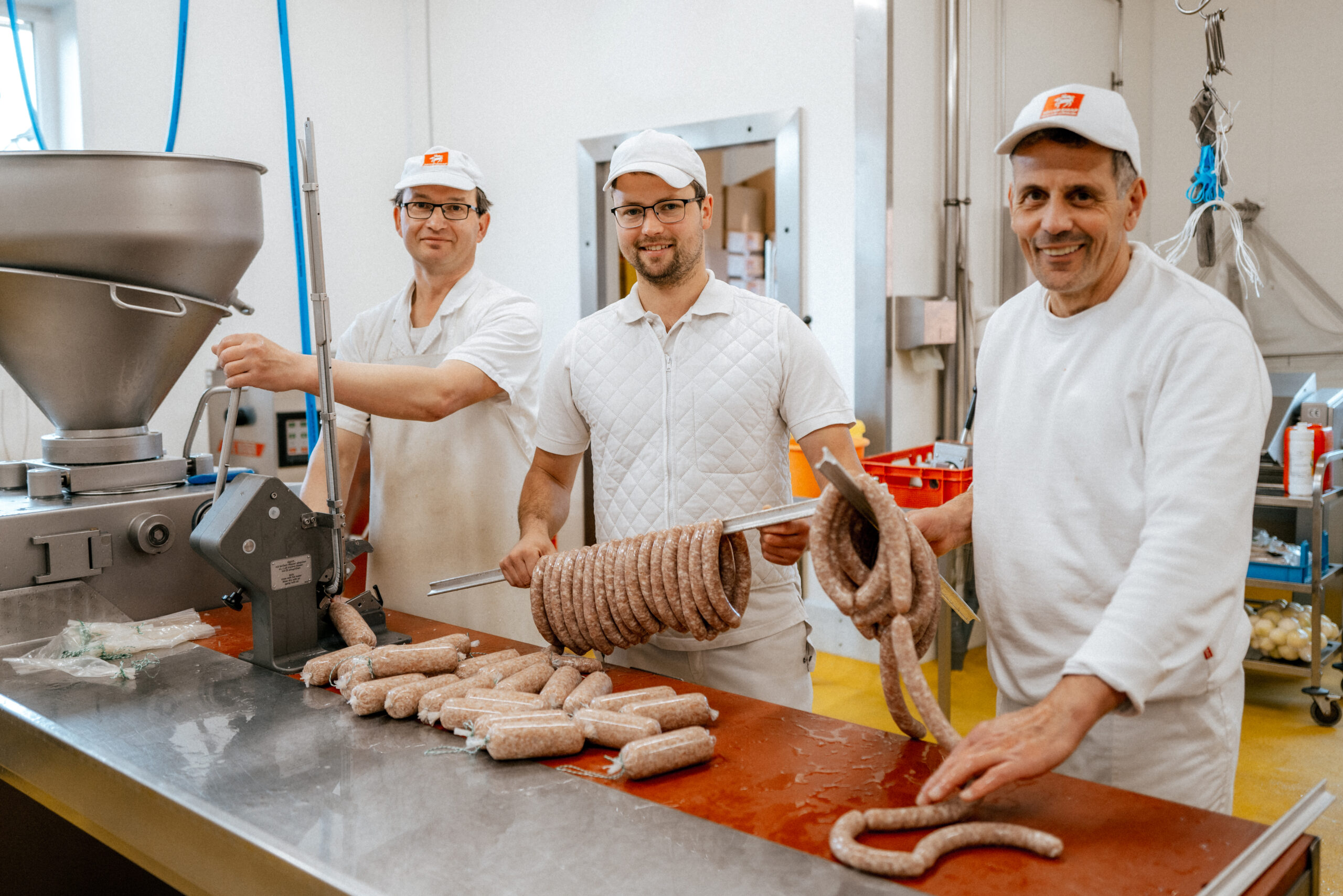 Um diese Tradition und die alten Rezepte zu erhalten, werden auch unsere Schweine älter und größer, bevor sie in unseren eigenen EU-zugelassenen Räumlichkeiten zur schmackhaften Wurst nach Hausschlachterart verarbeitet werden.
