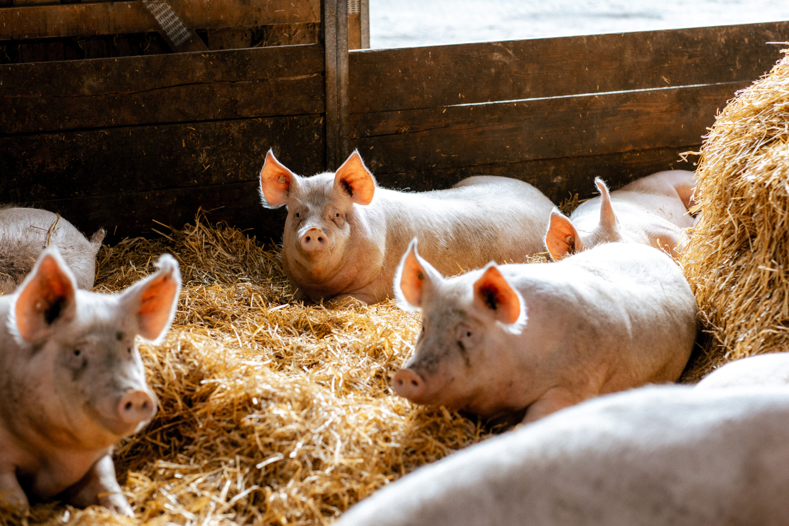 Seit 2001 leben unsere Schweine in einem Außen-Klima-Kaltstall auf einer dicken Strohschicht. Dort haben sie ständig frisches Wasser, freien Zugang zu ihrem Futter und viel frische Luft. Die Futtergrundlagen, wie Gerste, Hafer und Ackerbohnen zur Eiweißversorgung, bauen wir selbst auf unseren Feldern an – Selbstverständlich gentechnikfrei.
